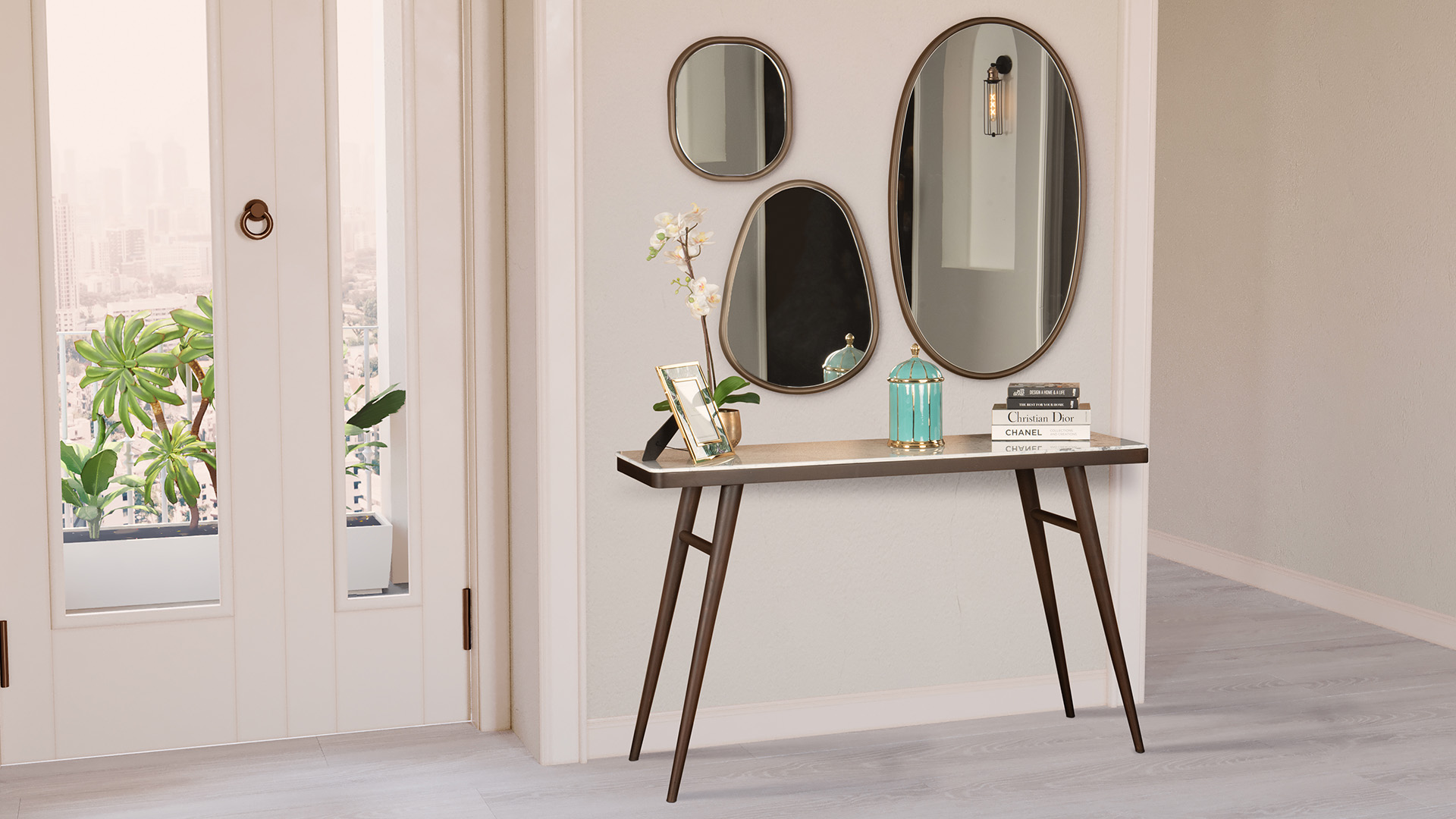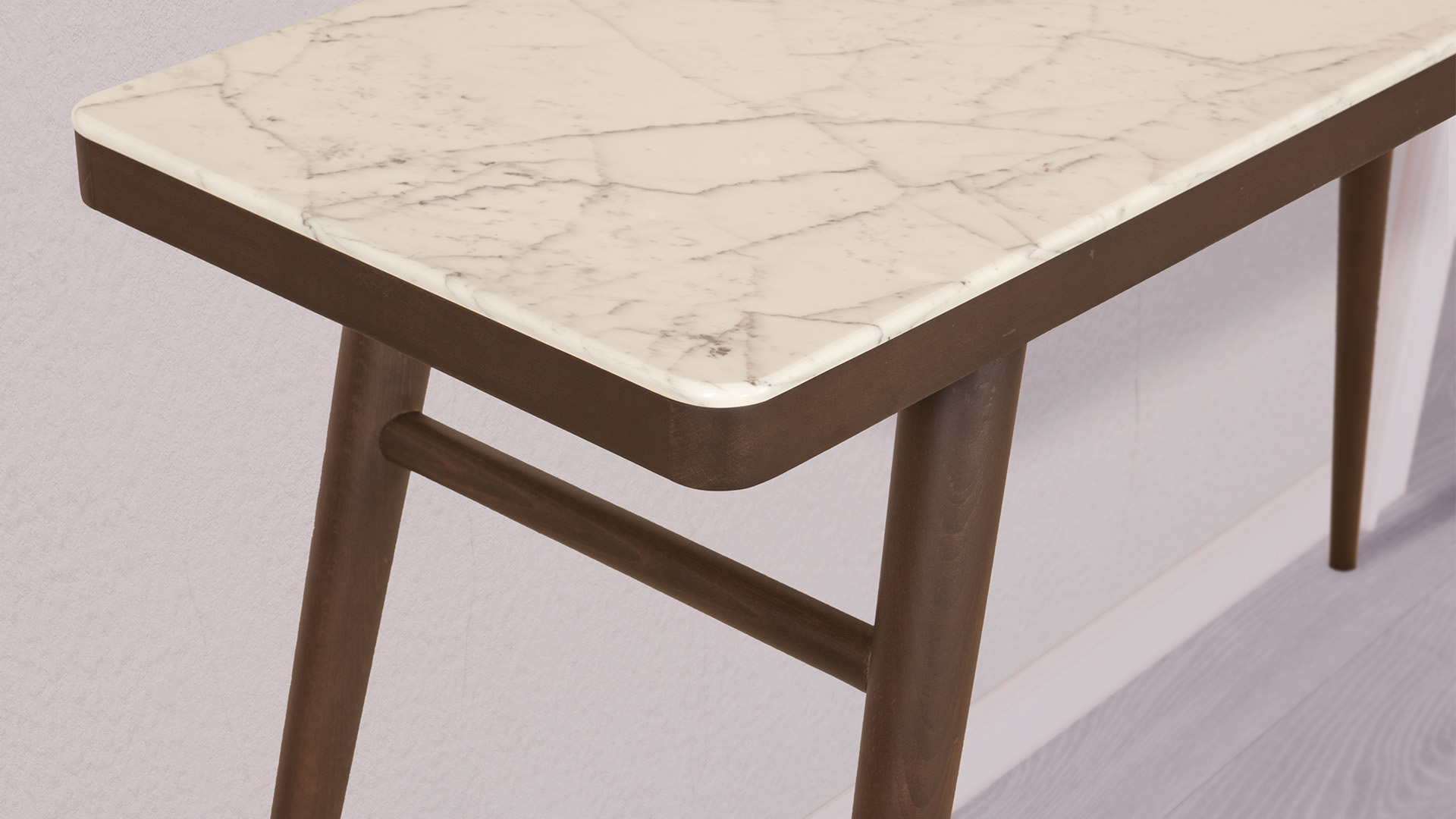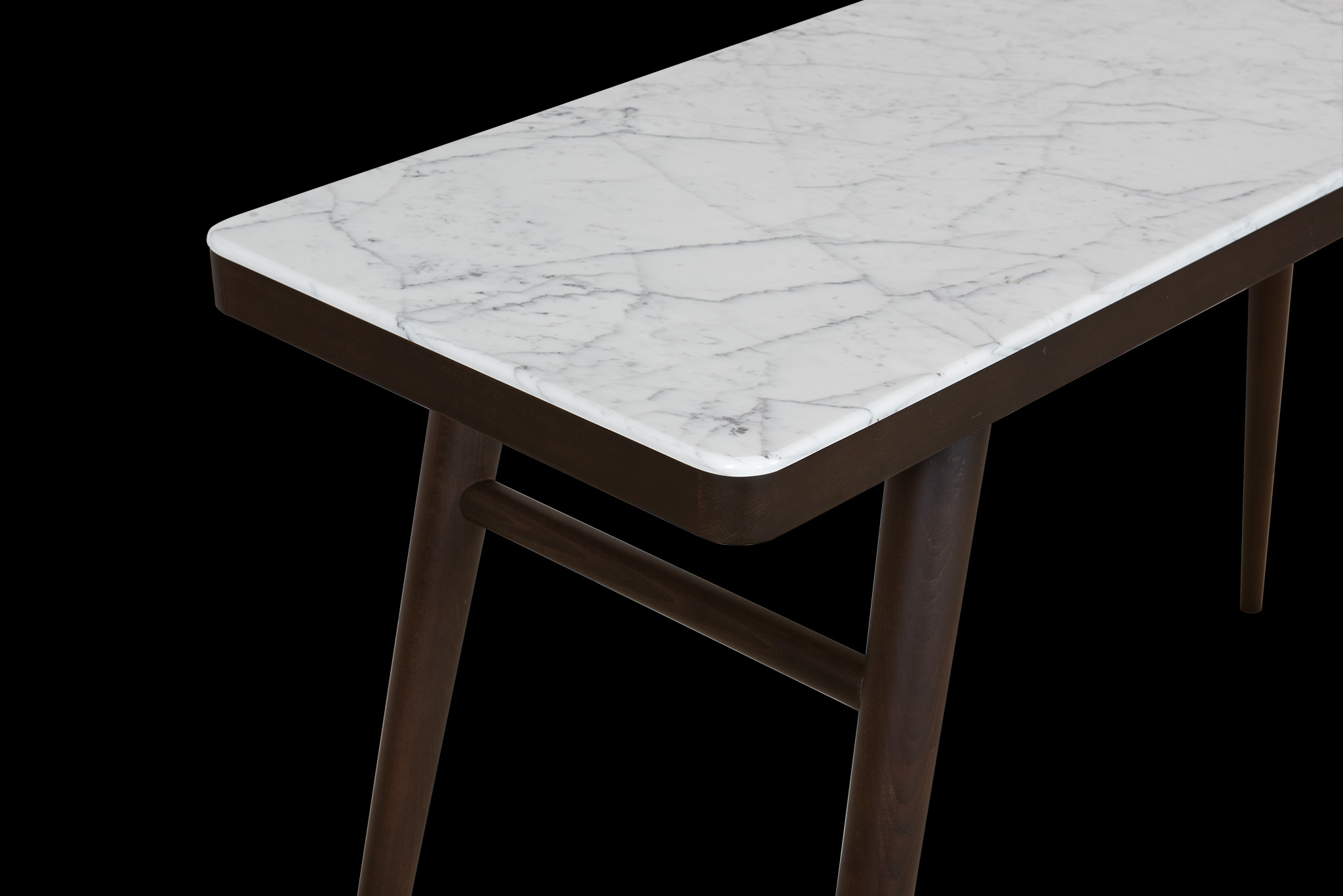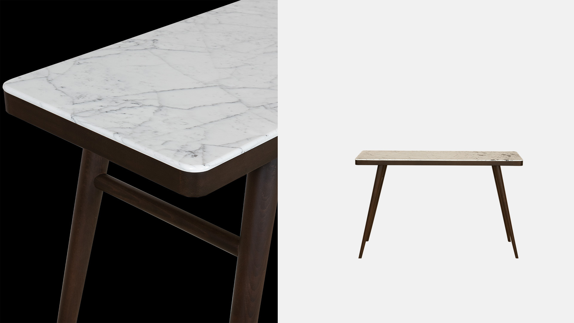 The elegantly flared lines of the table base made of solid hornbeam the console an exceptional air of visual lightness. marble is the material of choice, to create an interplay of contrasts.