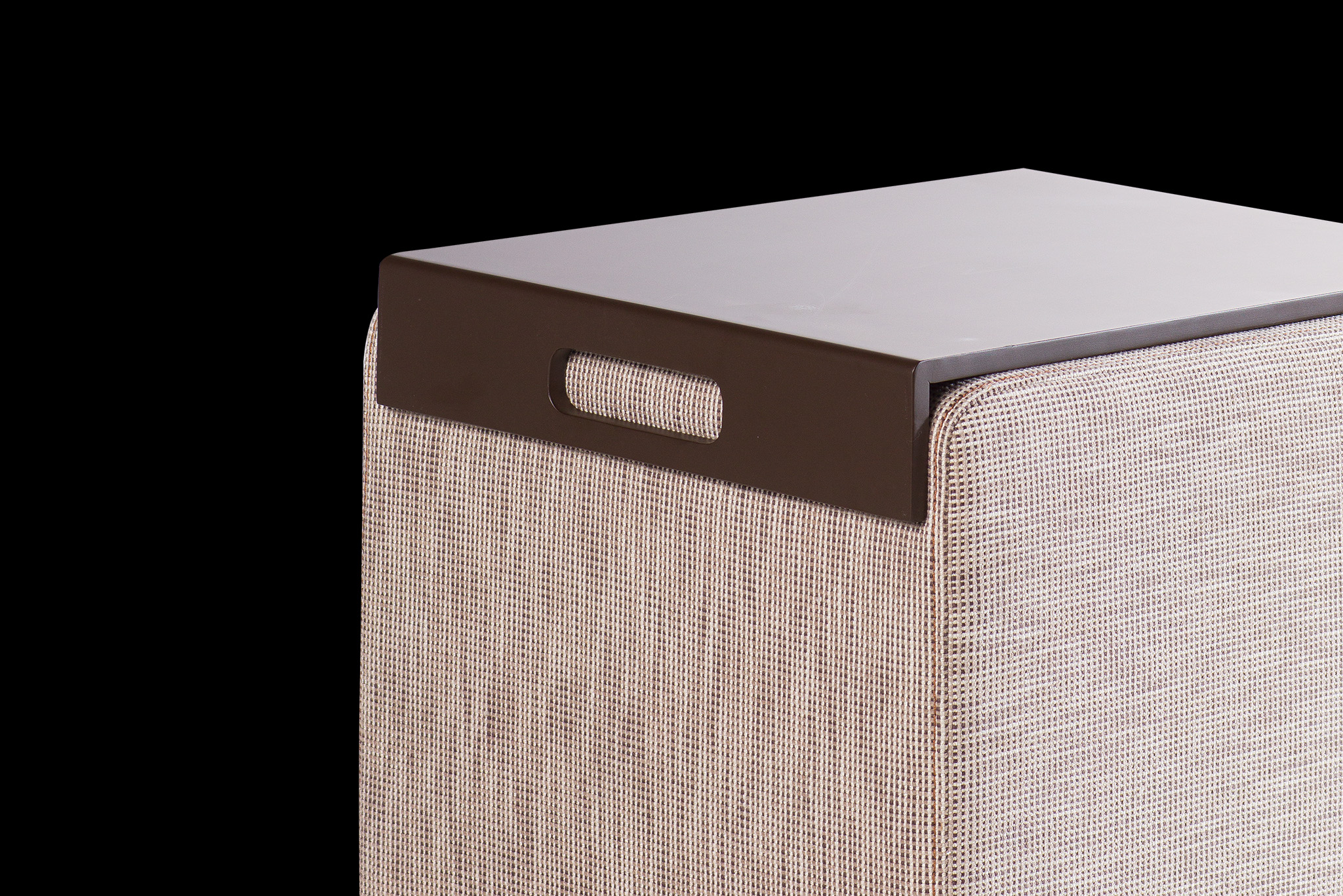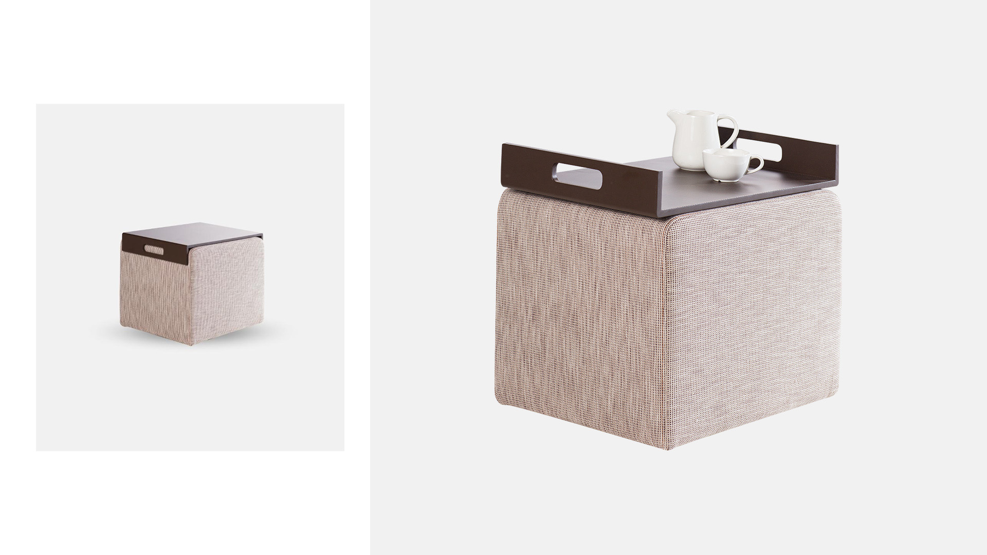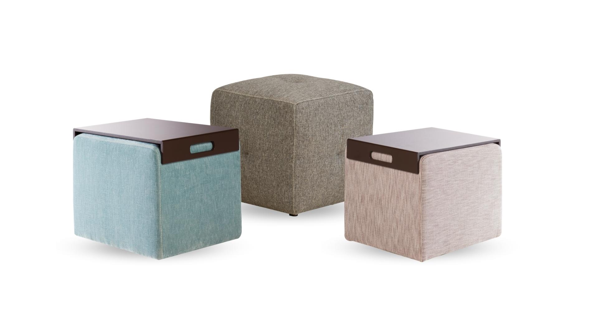 The Gilda pouf combines simple lines with the comfort of the padding and upholstery in fabric also with particular details such as the wood top.
