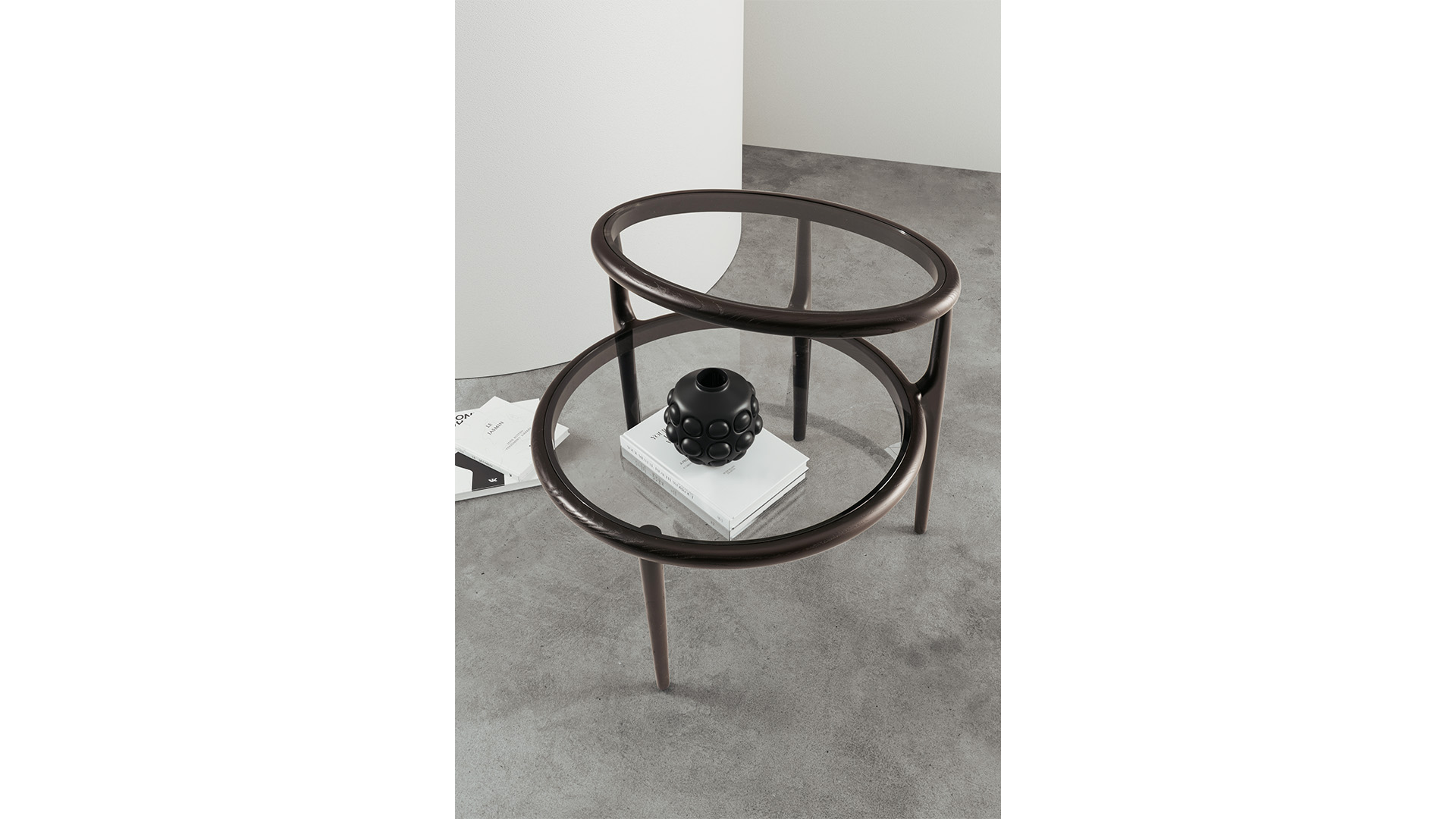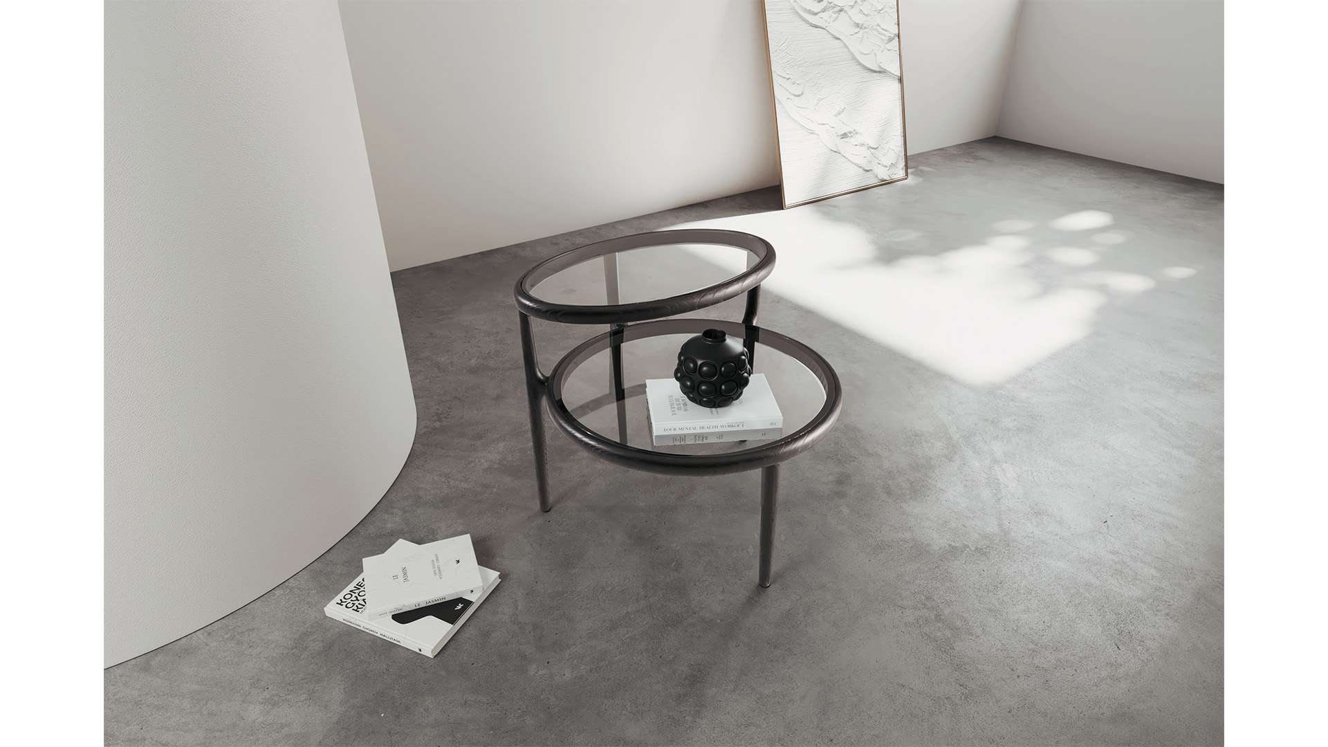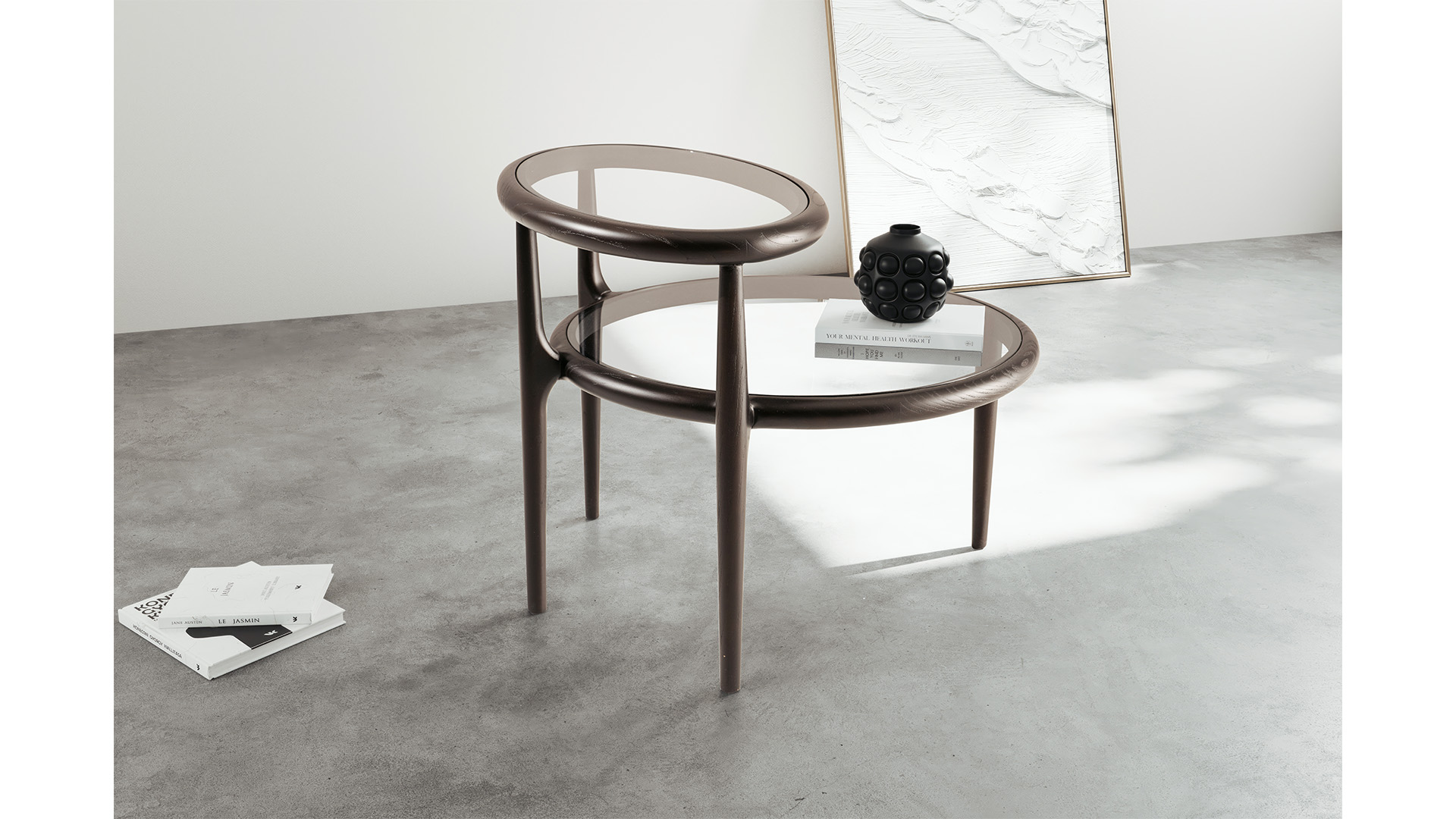 The OLENA Coffee table features a captivating design with a small circle positioned on top of a larger circle, creating a dynamic and visually interesting composition. The tabletops, made from high-quality wood, showcase the natural beauty of the grain and texture. To enhance the aesthetic appeal and functionality, both tabletops are covered with clear glass. The OLENA Coffee table with a tiered design, topped with clear glass, becomes a focal point in any room. It’s combination of natural wood elements and modern glass covering creates a harmonious and eye-catching piece of furniture that adds a touch of sophistication to your living space.