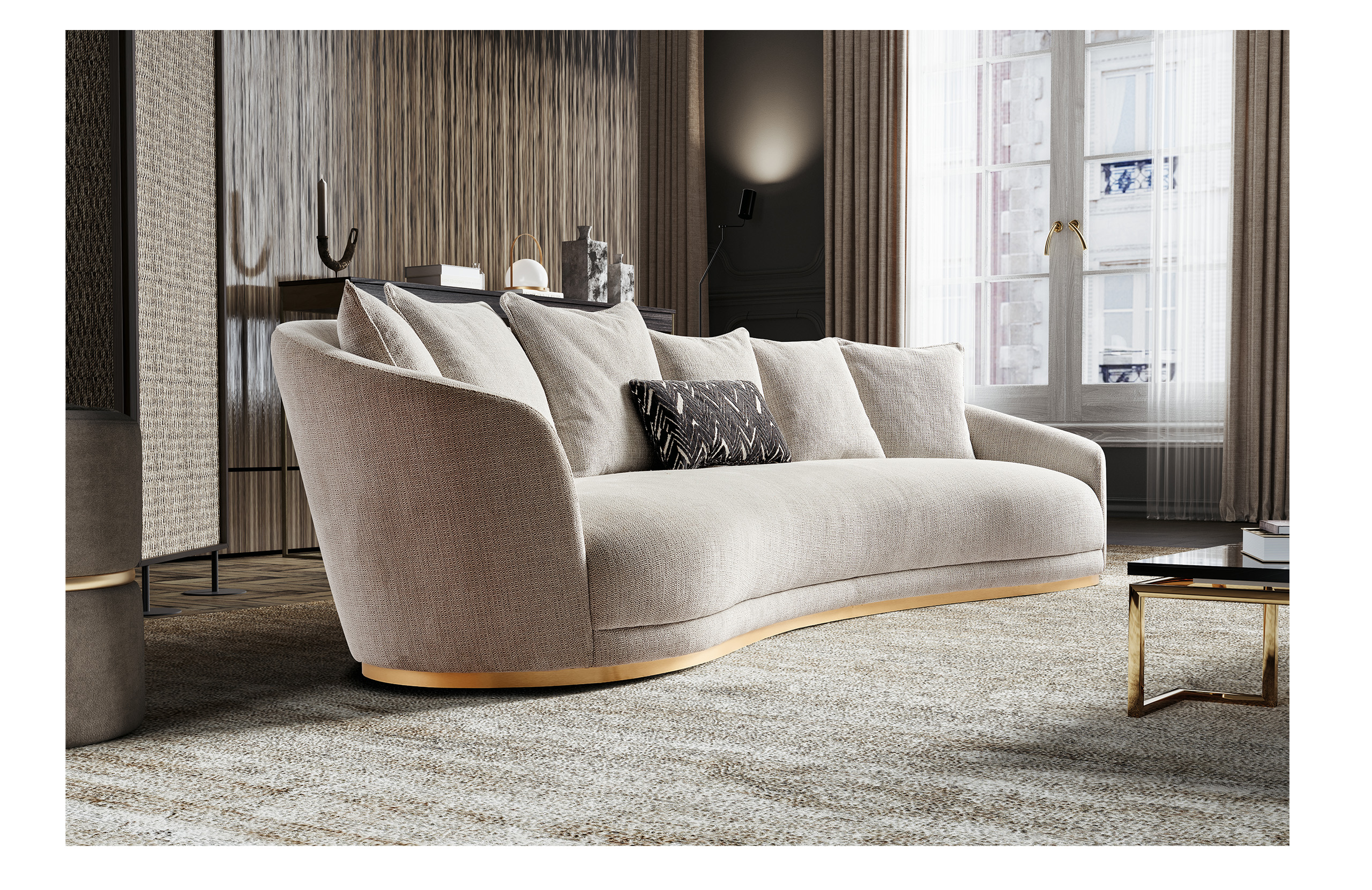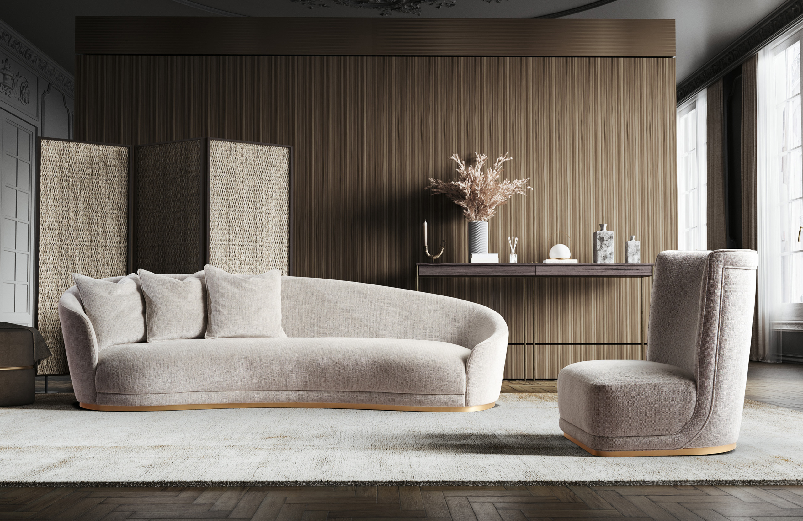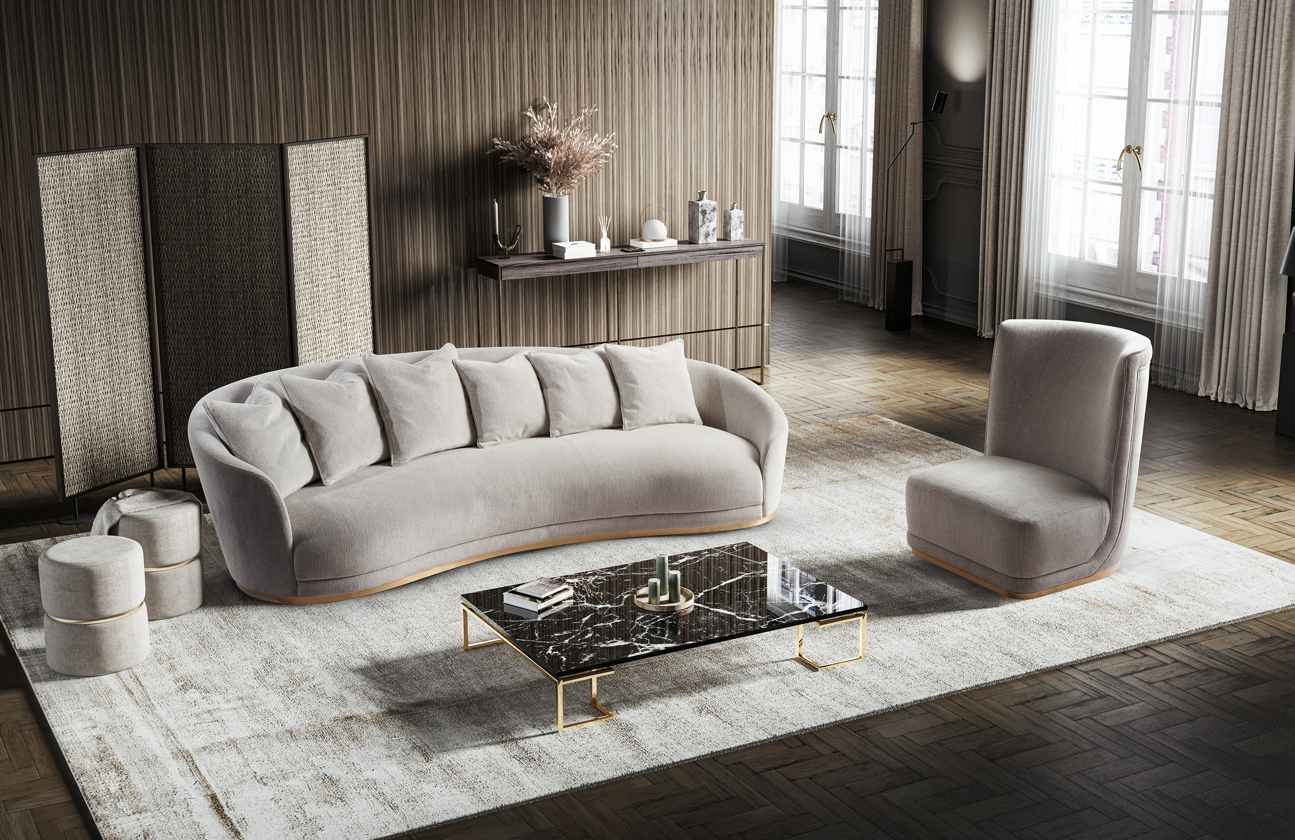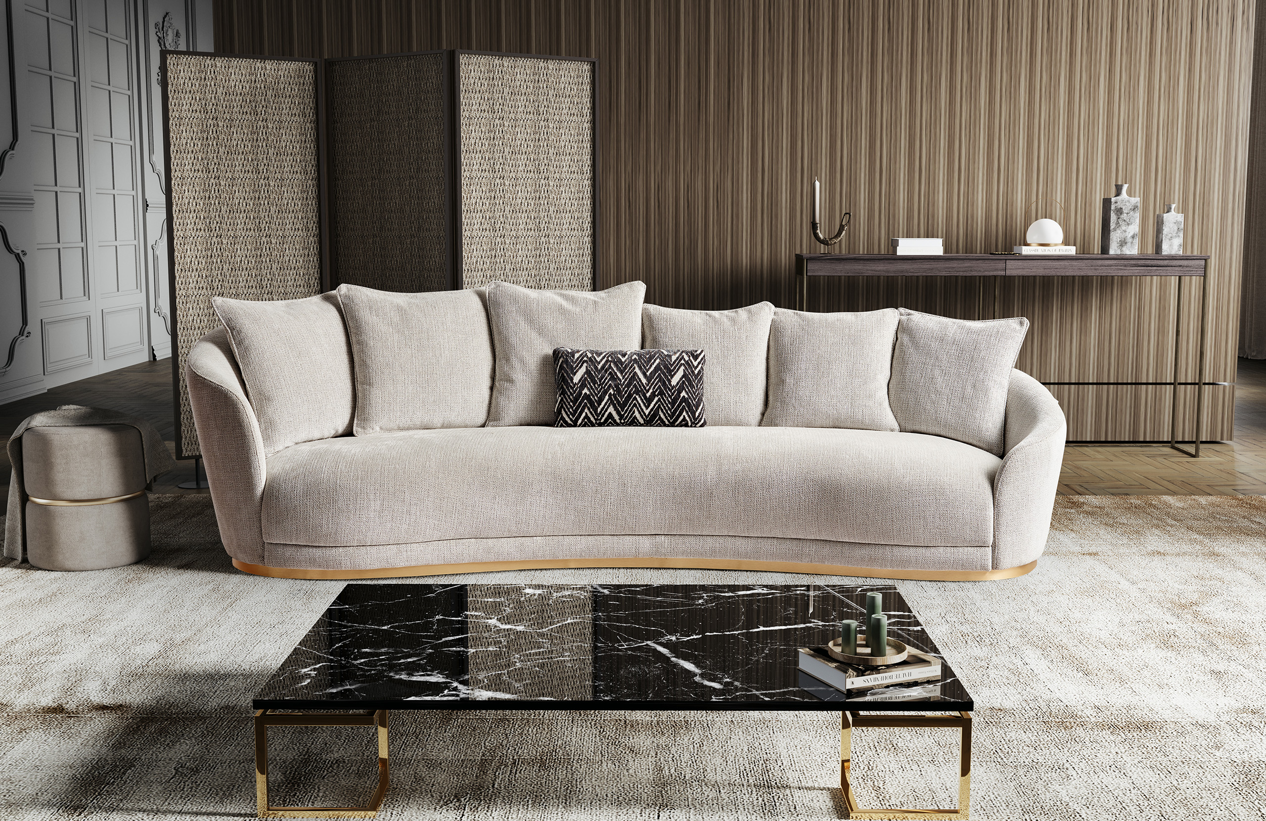 Valero Sofa offers a captivating option with its elegant and modern design. The unique rising back detail adds an eye-catching touch, setting its design apart from other sofas. Valero prioritizes both style and comfort, combining aesthetics and coziness seamlessly.The golden stripe accents further emphasize Valero Sofa’s style, adding a touch of magnificence and sophistication. Thanks to these special details, Valero infuses elegance and a modern touch into your space.